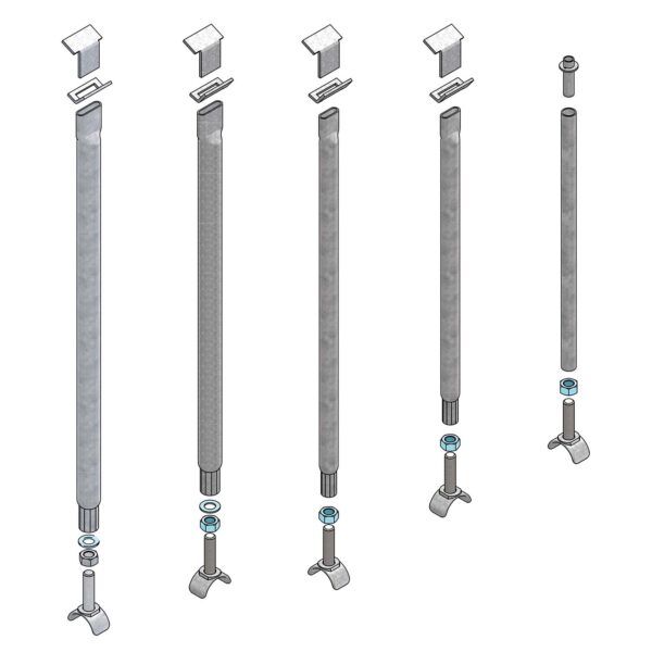 Verstelbare spijlen voor voerhekken. Leverbaar voor diverse types Spinder voerhekken.