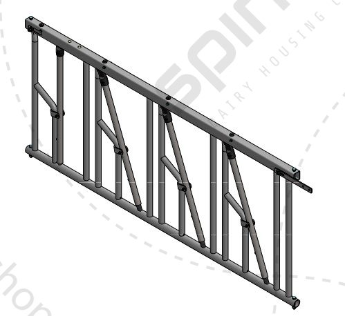Baseline zelfsluitend voerhek kalveren (verstelbaar)Vreetplaatsbreedte: 35 cm / 7 vreetplaatsen / lengte: 280 cmHoogte: 70 cmMankement: was speciaal werk (langer dan een standaard lengte) en transportschade, zie afbeelding.Bevestigingsmateriaal is afhankelijk van uw specifieke situatie, heeft u ander bevestigingsmateriaal nodig? Die zijn te vinden in de webshop onder categorie montagedelen