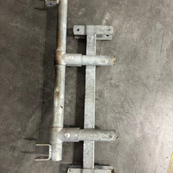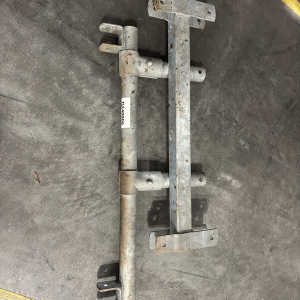Baseline zelfsluitend voerhek kalveren (verstelbaar)Vreetplaatsbreedte: 35 cm / 10 vreetplaatsen / lengte: 370 cmHoogte: 70 cmMankement: was speciaalwerk (langer dan een standaard lengte + aangelaste middenbevestiging bovenop)Bevestigingsmateriaal is afhankelijk van uw specifieke situatie, heeft u ander bevestigingsmateriaal nodig? Die zijn te vinden in de webshop onder categorie montagedelen