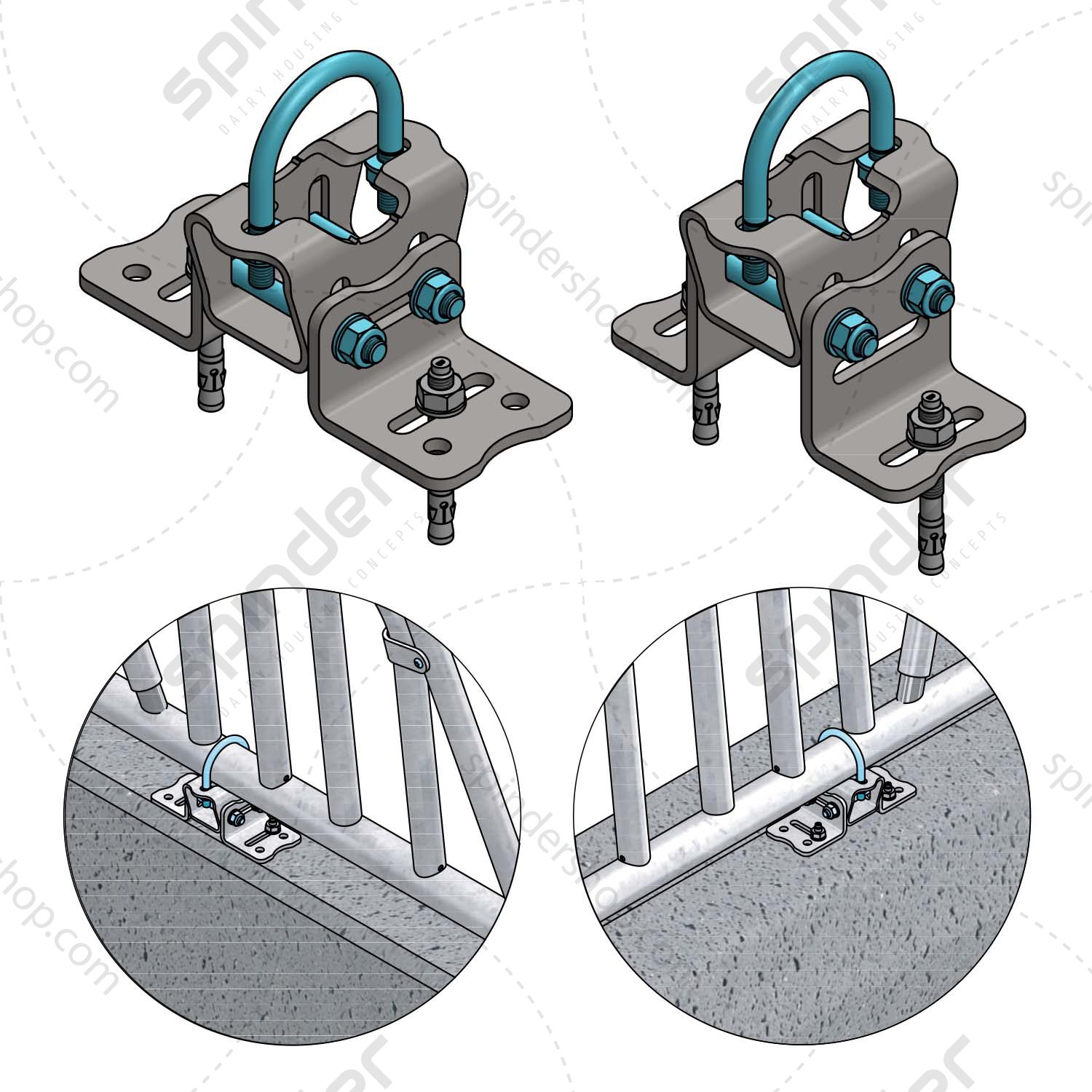 Middenbevestiging 2″ onderbuis op betonmuur, incl. ankerbouten