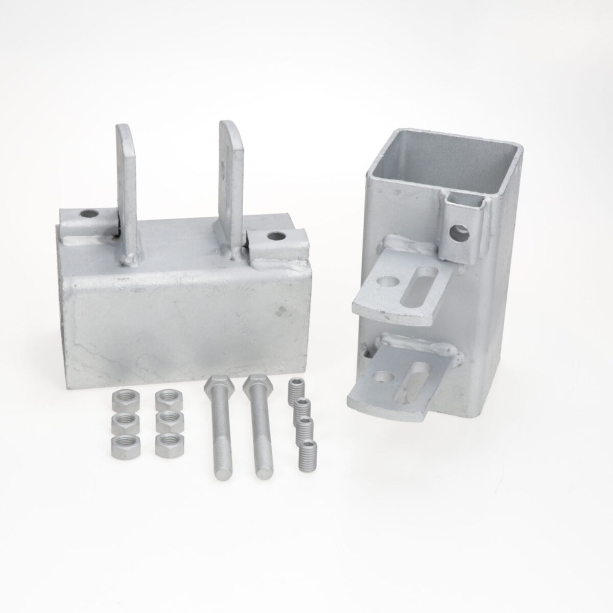 Stel bevestigingsdelen voor montage van afscheidingshekken aan vk80 standpaal. Geschikt voor vaste en draaibare montage. Levering per stel, incl. bouten. Verkrijgbaar in diverse uitvoeringen.